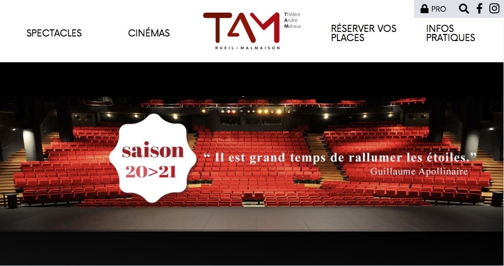 Après plusieurs années de bons offices, le design classique du site du TAM a fait place à une deuxième refonte, plus dynamique et colorée, et plus immersive avec des contenus vidéo et davantage d’informations. Les spectacles et films à l’affiche, accessibles via une navigation plus fluide en AJAX, sont mis en avant par de plus grands visuels et par la nouvelle charte graphique proposée par AGEPCom.