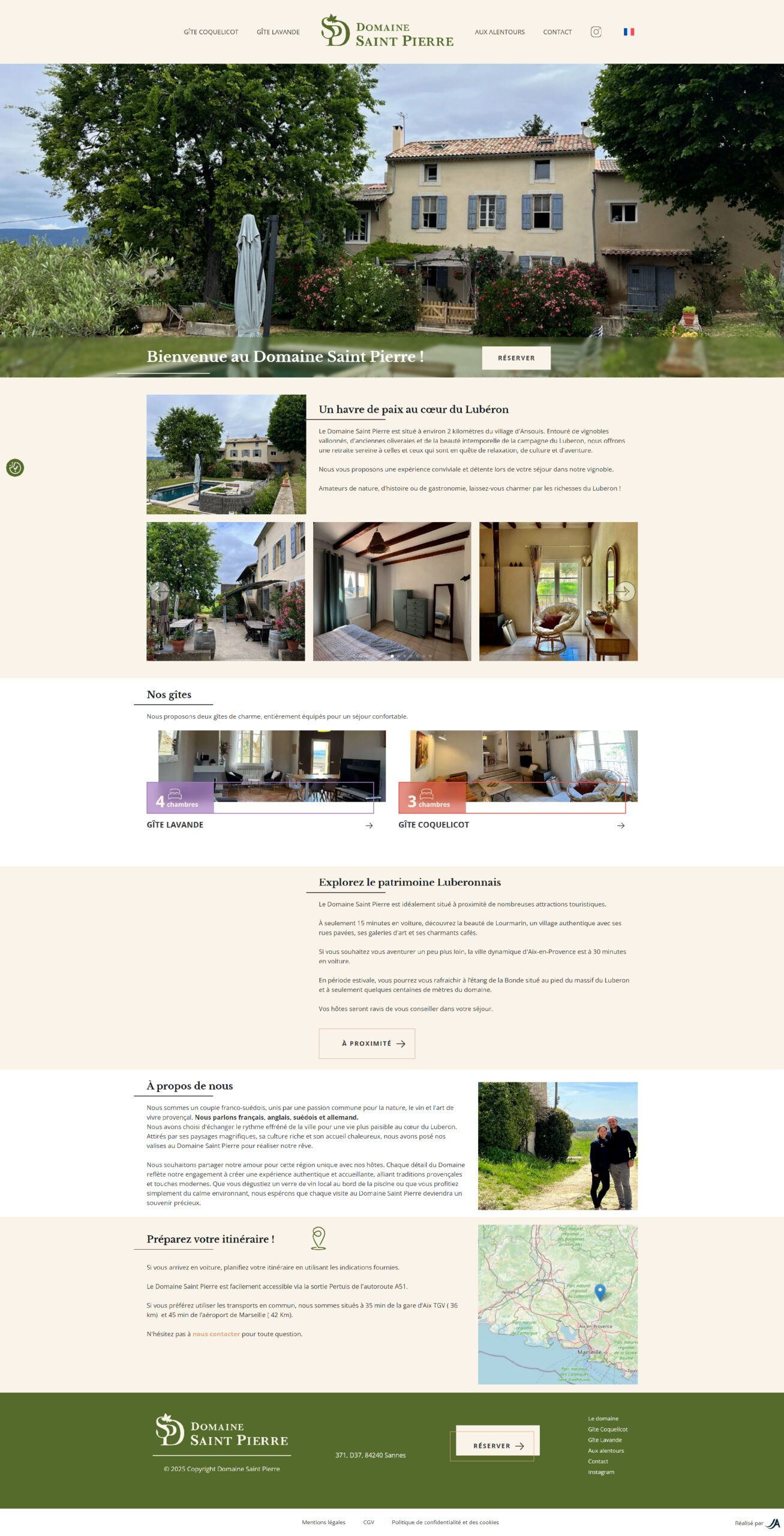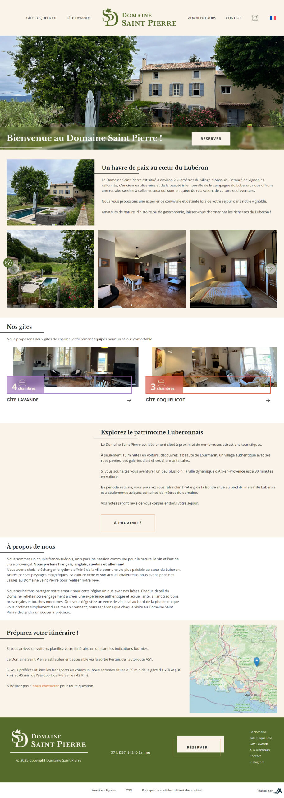 - Webdesign Sur Mesure : chaque aspect du site a été pensé avec un webdesign sur mesure, garantissant une expérience utilisateur unique et une esthétique parfaitement alignée avec l’univers du domaine et du Lubéron
